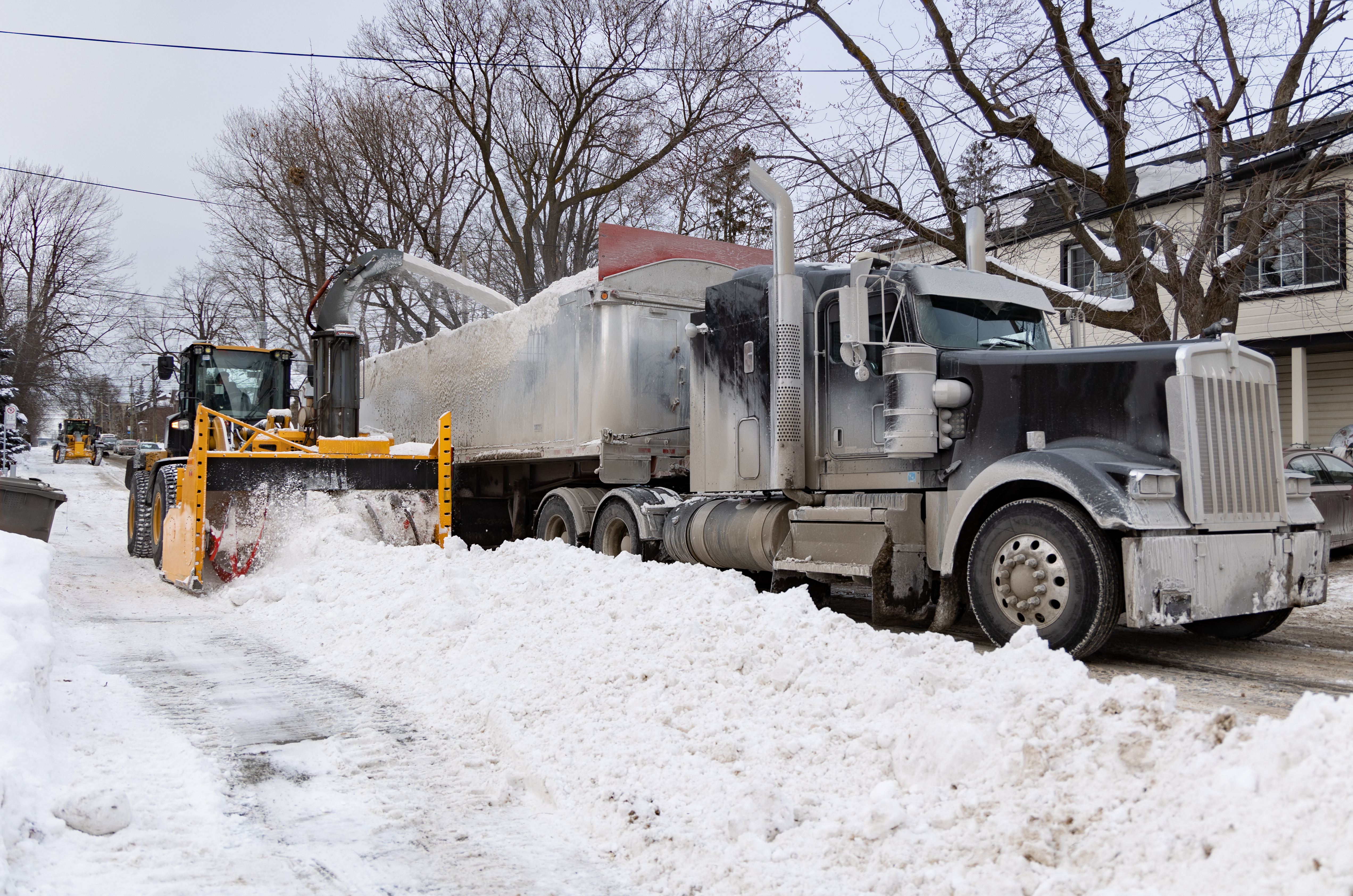 Our winter logistics support can include snow removal coordination, hauling support, equipment and truck staging considerations, site access planning, loader and support vehicle coordination, disposal routing, and related field logistics that allow removal activities to be carried out in an efficient and controlled manner. These services are especially important in dense urban areas, high-traffic districts, commercial corridors, transit-adjacent zones, institutional campuses, and other locations where snow cannot simply be pushed aside and left in place without affecting visibility, traffic flow, pedestrian movement, parking, or emergency access. In these settings, winter operations often require a broader response that extends beyond routine plowing and into active snow management.